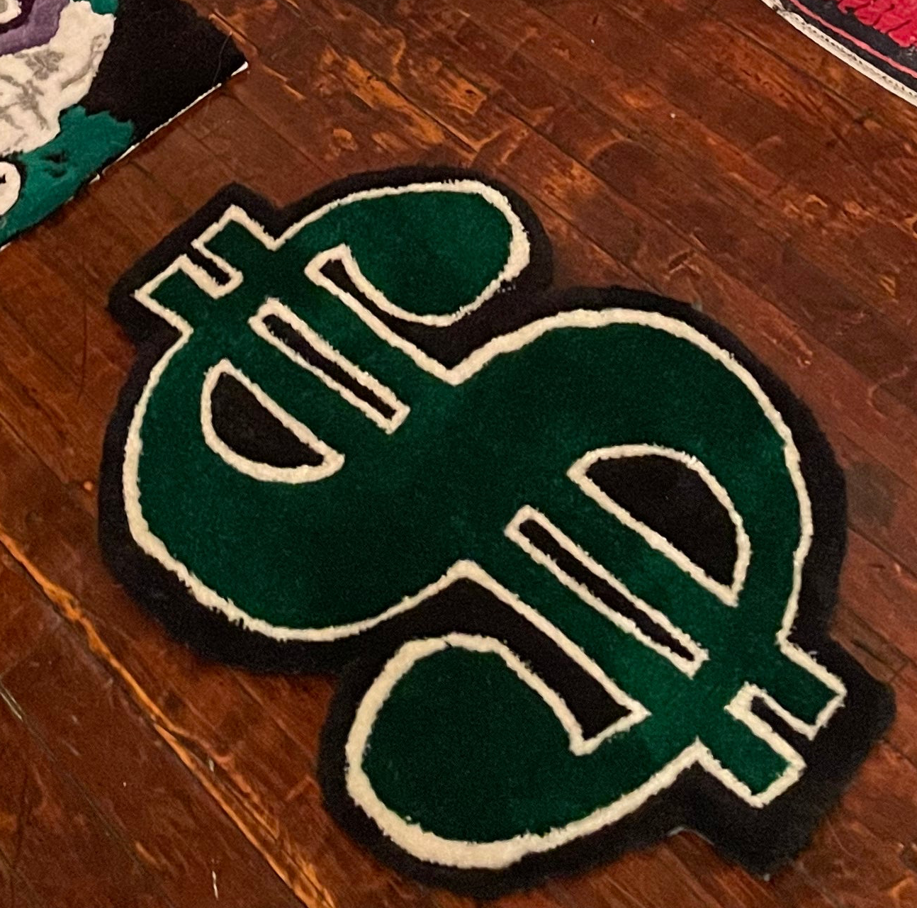 Cut from the same cloth as hustle and chaos. The Money Talks rug flips a classic dollar sign into a raw statement — deep green pile, cream outline, and black trim that hits like asphalt under streetlights. Hand-tufted with texture and attitude, it’s not about luxury — it’s about proof.