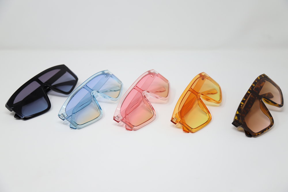 Thick plastic frame with colored translucent gradient lenses. Perfect for when you want to see some color on those not for sunny days. The translucent lenses are also perfect for day to night time wear when you don’t want to compromise your look for your vision. All day flight.